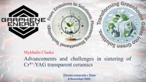 On November 8th, 2024, at the University of Zilina, Dr. Mykhailo Chaika delivered a lecture entitled “Advancements and challenges in sintering of Cr4+:YAG transparent ceramics”.